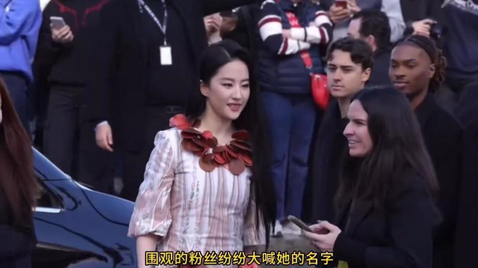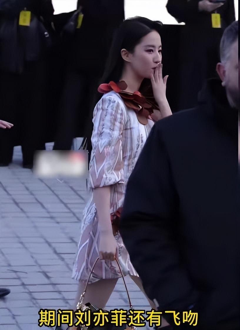 然而,比静态生图更 " 致命 " 的,是动态的瞬间。刘亦菲下车一刻,现场观众席瞬间爆发出 "Liu Yifei!" 和 "Mulan!" 的高声欢呼,外国粉丝狂热的喊话声穿透了整个秀场。面对镜头与热情粉丝,刘亦菲数次自然送出飞吻,仪态在优雅与俏皮间无缝切换。这段 " 飞吻互动 " 视频单日播放量激增,衍生出 " 这飞吻谁接得住啊 "、" 被神仙姐姐的飞吻击中了 " 等全网热梗。