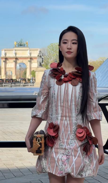 镜头拉近,刘亦菲身着的正是 LV 2026 春夏系列红色短裙。裙身被立体花瓣层层包裹,宛如一朵盛放的红玫瑰,唇色与圆形红色配饰巧妙呼应,整体造型被外媒盛赞为 " 行走的玫瑰花 "。细心的粉丝还发现,这条看似浪漫至死的裙装,竟暗藏实用口袋,巧妙点题了品牌一贯的实用主义美学内核,堪称 " 仙气与地气并存 "。